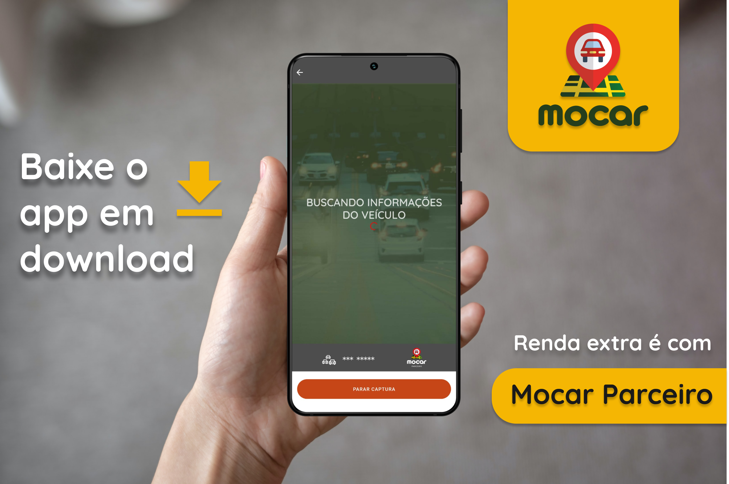 Baixe o aplicativo Mocar Parceiro disponível no Play Store.